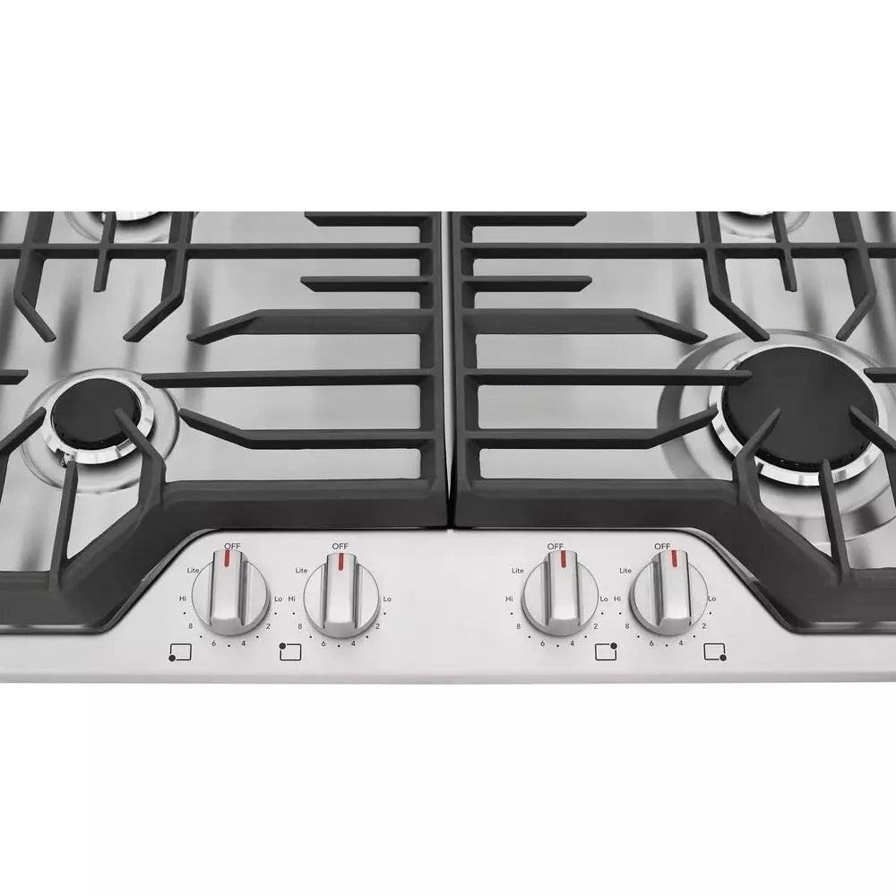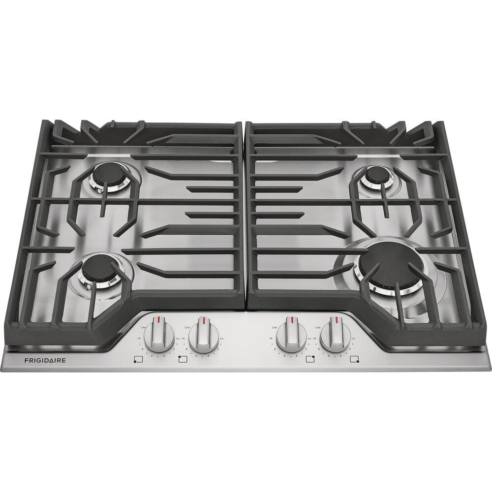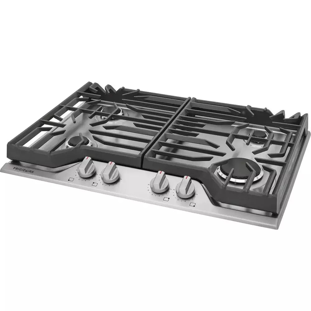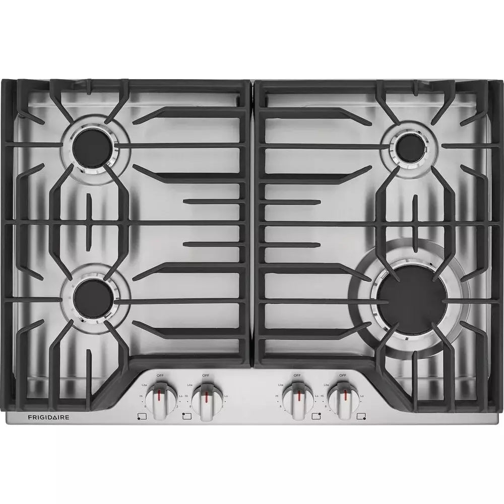 30 Inch Gas Cooktop with 4 Sealed Burners, Continuous Grates, Spill Safe® Cooktop, Dishwasher-Safe Burners Caps, Frigidaire® Fit Promise, Simmer Burner, Power Burner, and ADA Compliant: Stainless Steel
