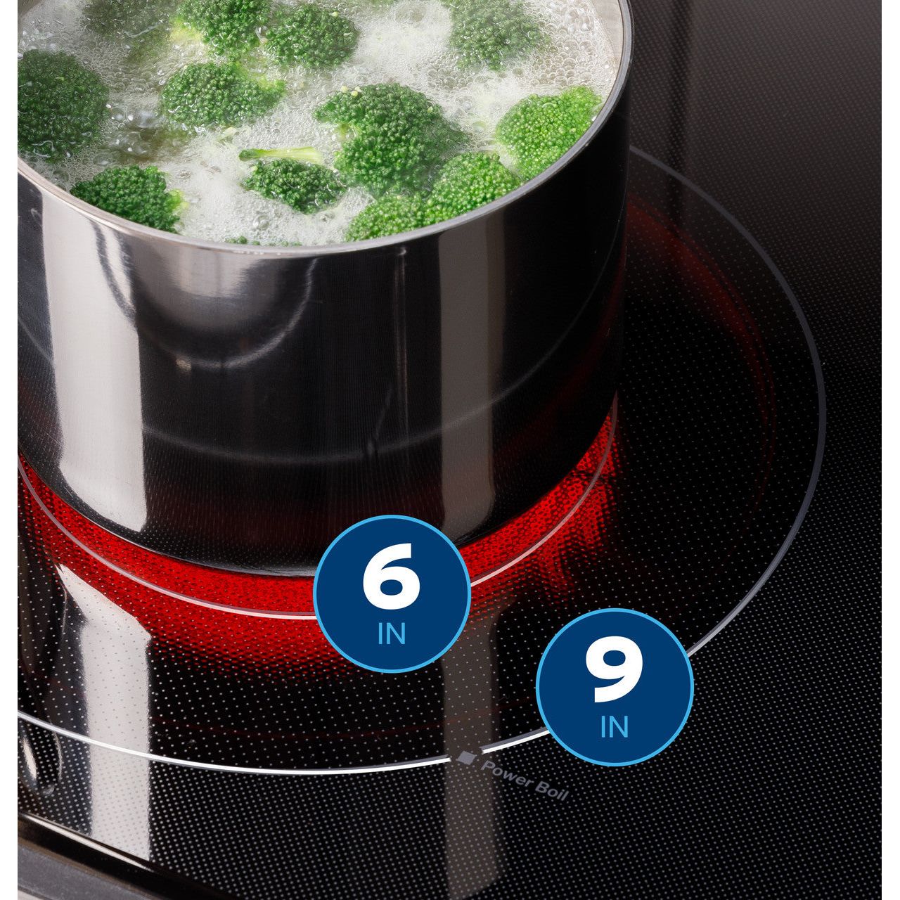 Easily adjust to any size pot or pan with a convertible 6" and 9" element that makes it easy to boil water faster.
