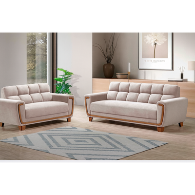 Modern Cream Upholstered Sofa & Loveseat Set with Stainless Steel Base