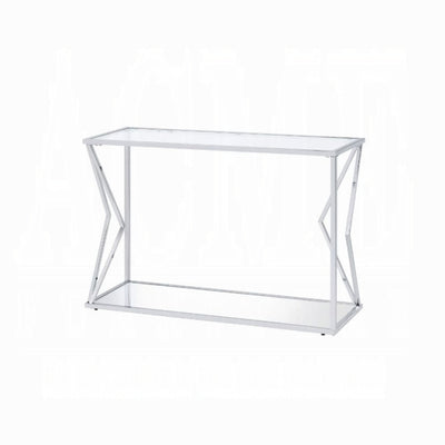 Modern Glass & Chrome Console Table with Faux Marble Shelf