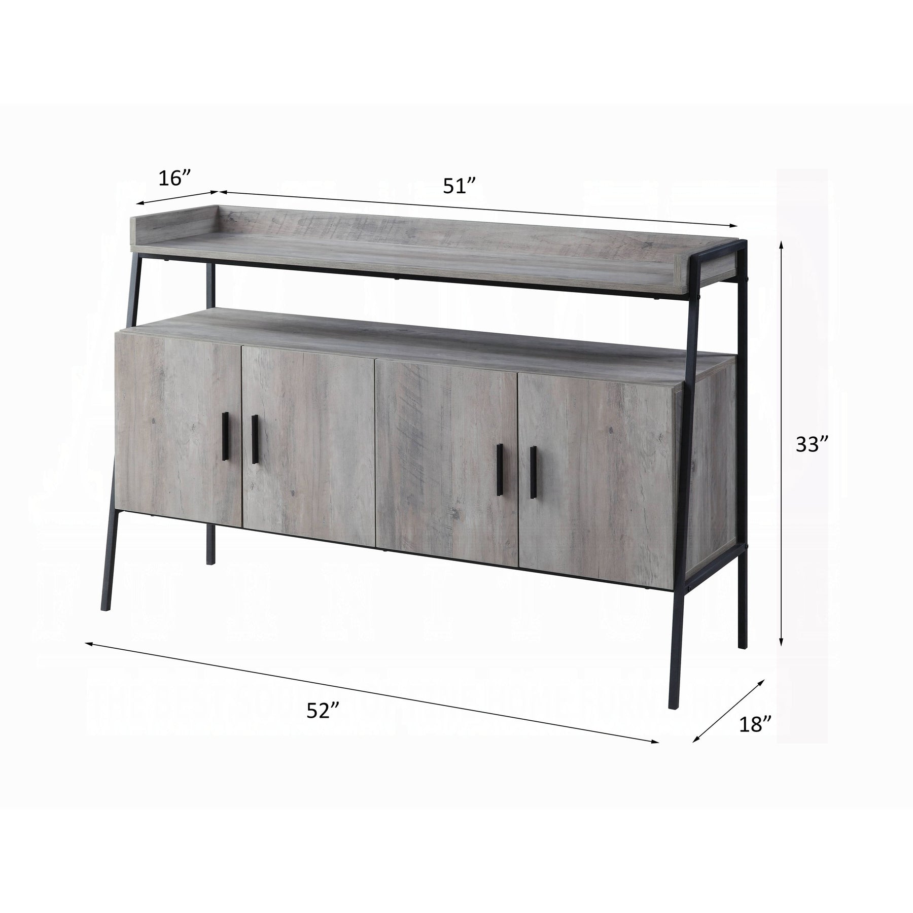 Add an industrial-modern touch to your living room with this gray oak and black TV stand. Featuring a clean-lined silhouette, warm wood tones, and a sturdy metal frame, this media console blends style and function effortlessly. The elevated design keeps your space feeling open while providing practical storage for media components and décor.