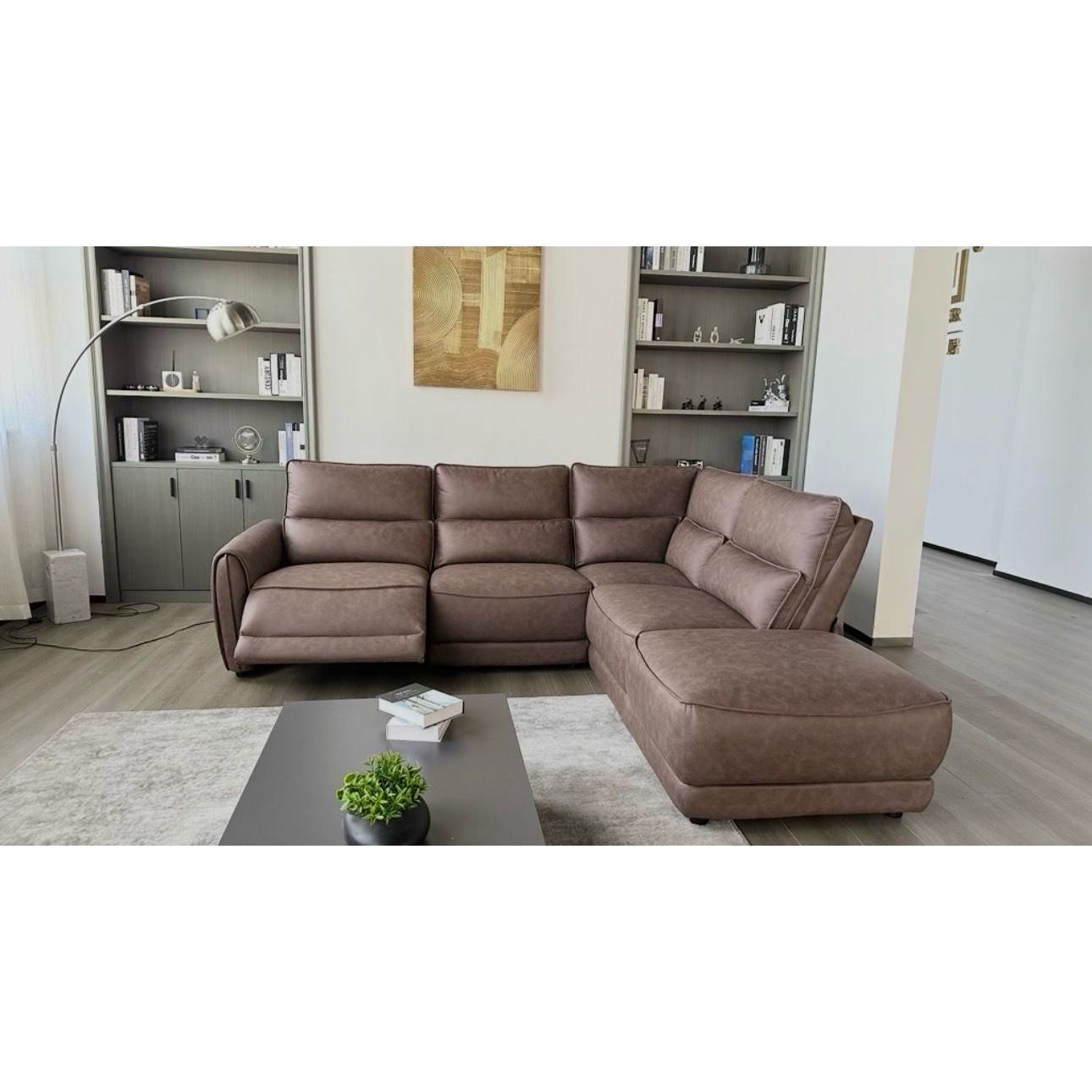 Milano Power Sectional Recliner – Premium Fabric with Leather Look - Brown