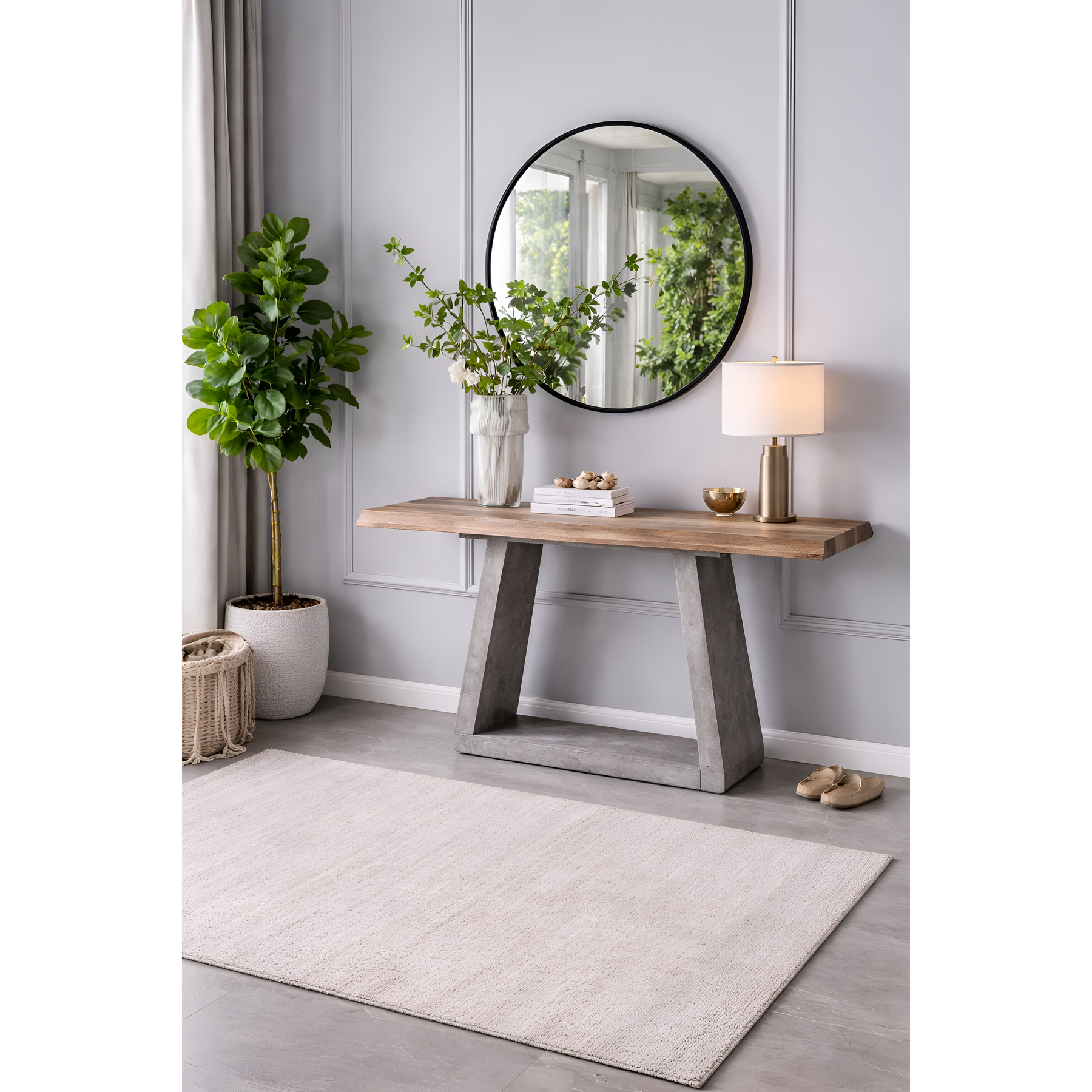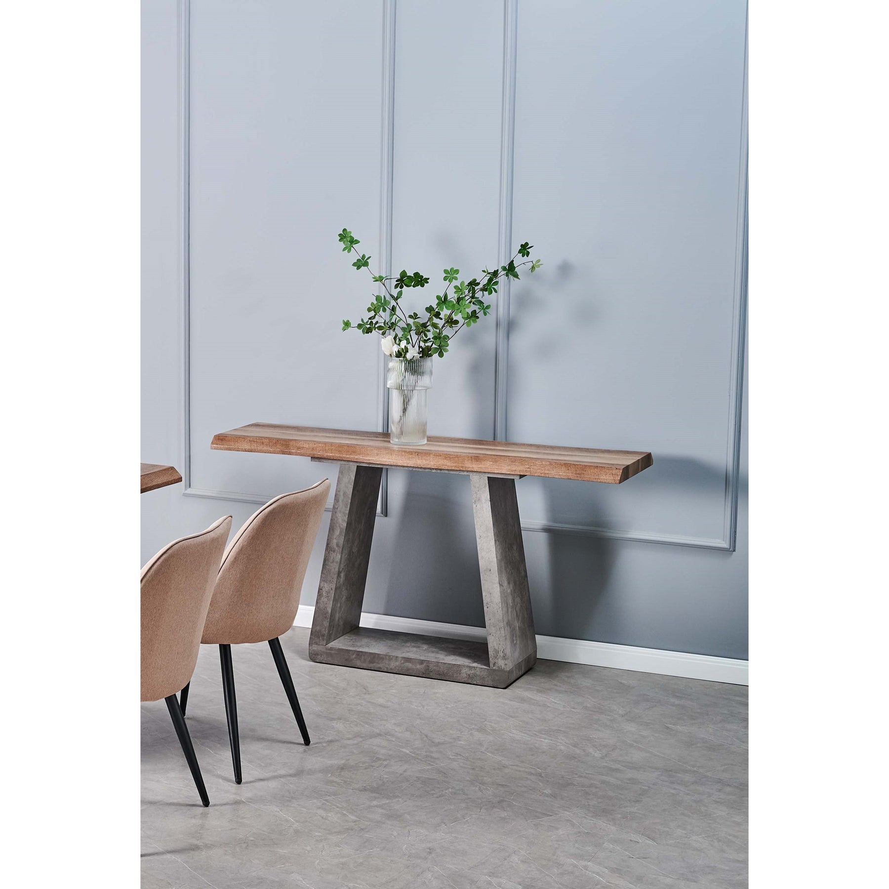 This fine Console set that is highlighted by a rectangular table. Each also features a trestle-style base and crisscrossing legs for a sleek design. This impressive rustic-style set is sure to be the scene of great stories.