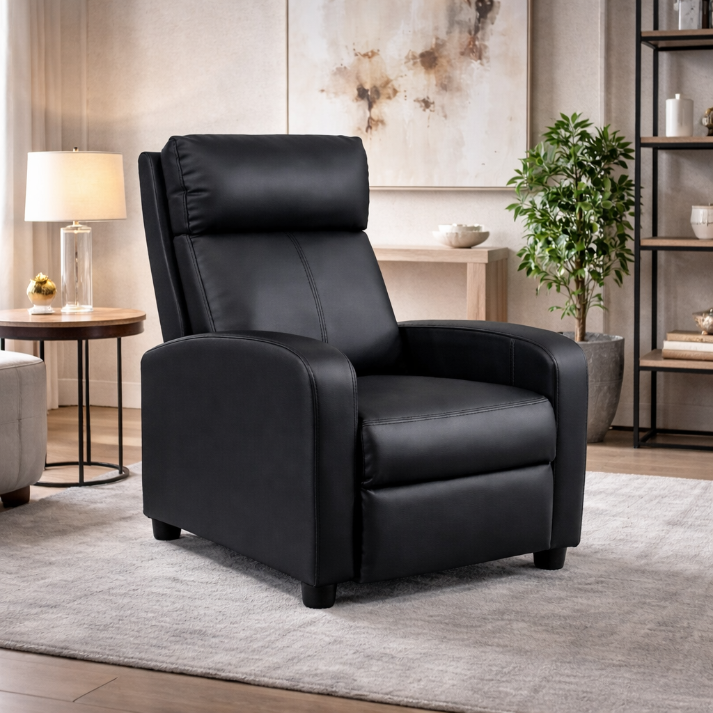 Modern Push-Back Recliner – Black (PVC Upholstery)