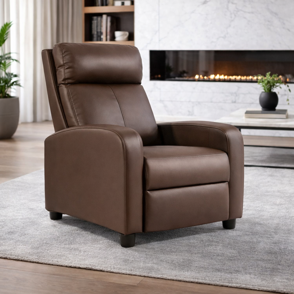 Modern Push-Back Recliner – Brown (PVC Upholstery)