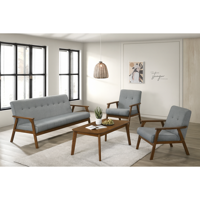 Is featured in a beautiful light gray fabric finish for a neutral but classy look. With its classic look and durable construction, this piece complements various styles and offers long-lasting beauty.
